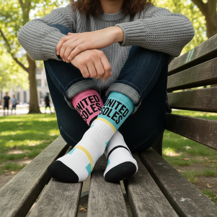 United Soles was built on one idea: keep it simple, make it well, and make it feel good. We don’t chase trends or statements; we create socks that look sharp, fit right, and last. Our designs are bold but clean. Familiar, yet fresh. Made for everyday wear from the couch to the street, from street to studio, from slides to sneakers.